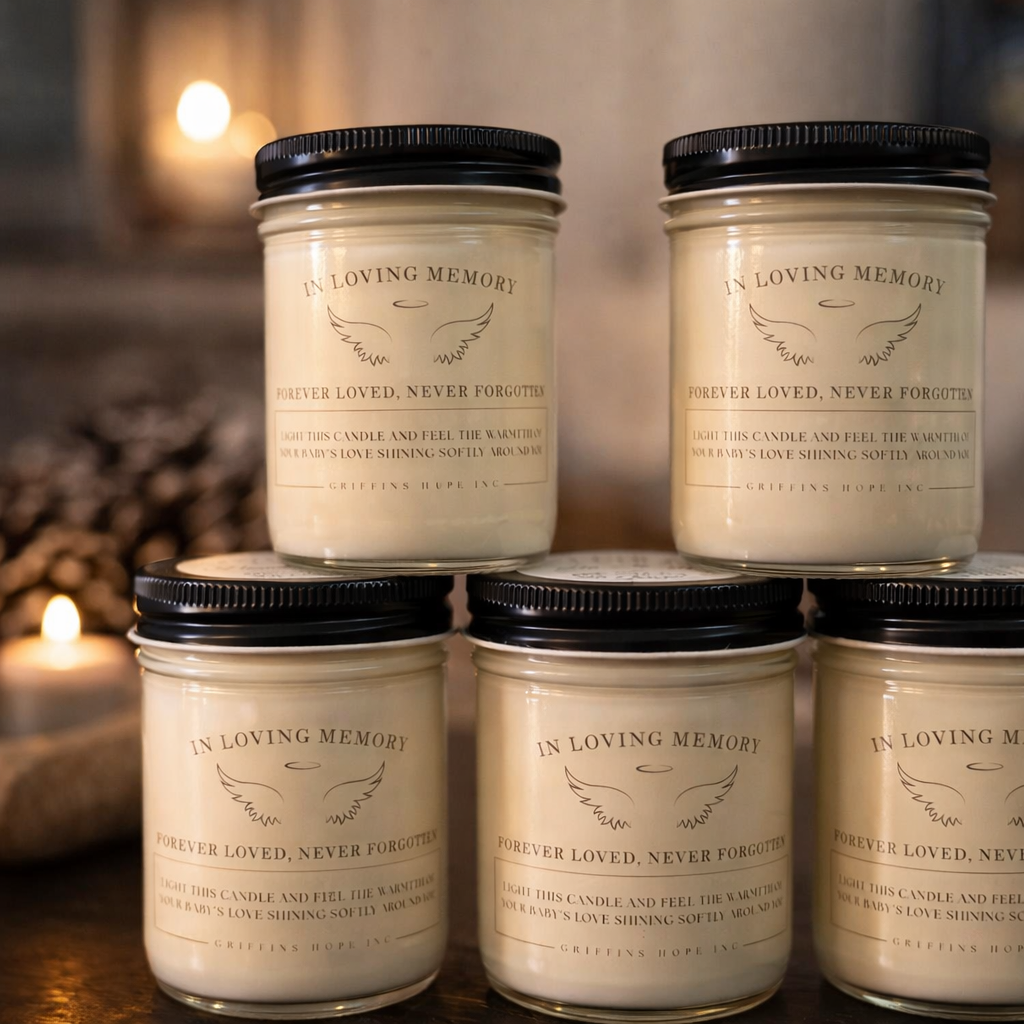 In partnership with Griffin’s Hope Inc., we donate 50% of proceeds from every Heavenly Linen candle to support families navigating unimaginable loss. Together, we aim to bring comfort, light, and remembrance to those who need it most